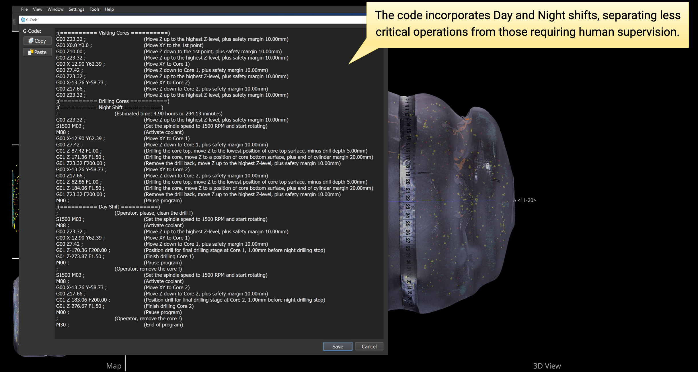 Export G-code to CNC coring machine